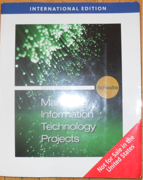 I am selling the Managing Information Technology Projects, 6th international edition, 2010, Kathy Schwalbe. The textbook is in good shape. Price: $20 elalbi@gmail.com 4164288628